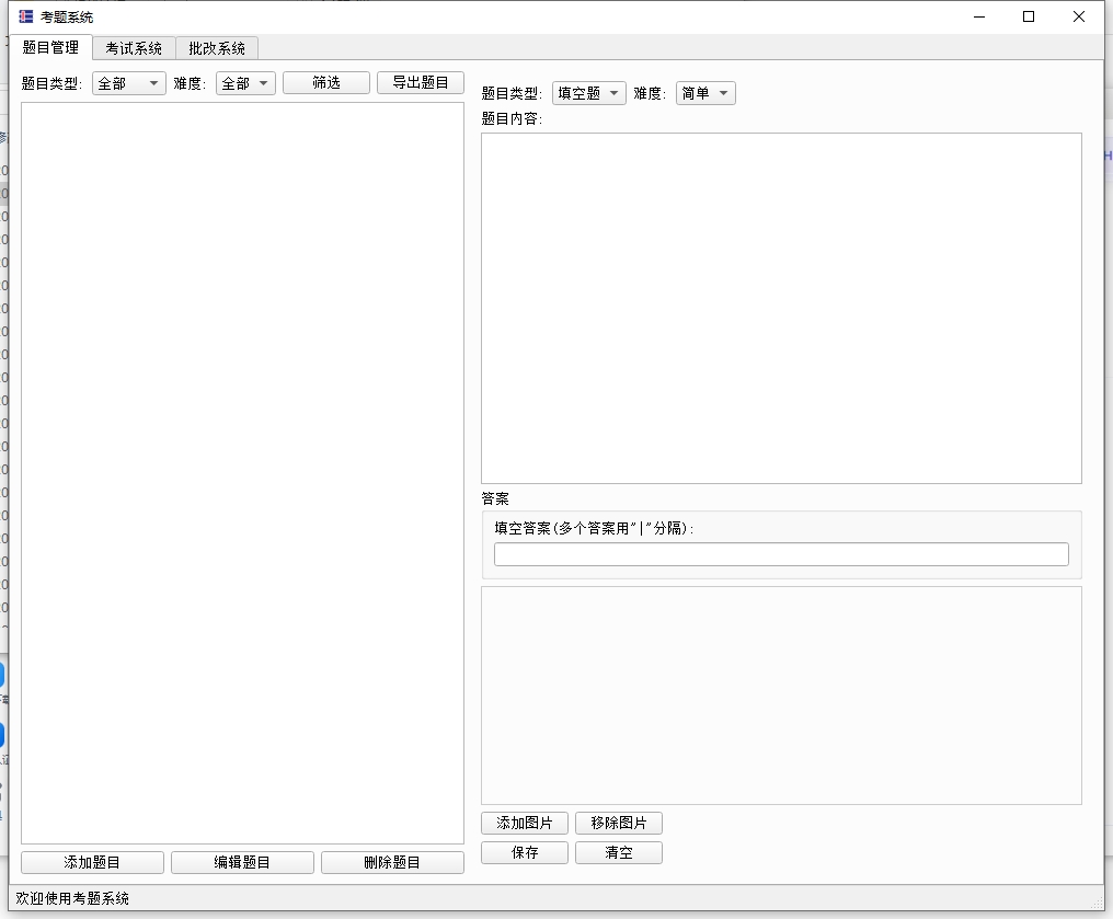 题库系统面向学生/考研/靠公/面试党,可以当作自己的错题本,记录错题,可以把考研的相关资料整理入内刷题用,双击图标运行程序,程序下会多出两个文件,一个存储数据,一个存图片。